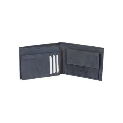 Kompakte RFID-Herrengeldbörse aus Leder | Dunkelgrau und Blau