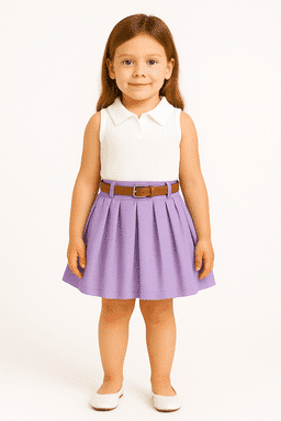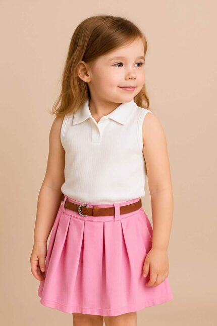 Girls’ 2-Piece Set – Sleeveless Polo Shirt with Pleated Skirt and Belt