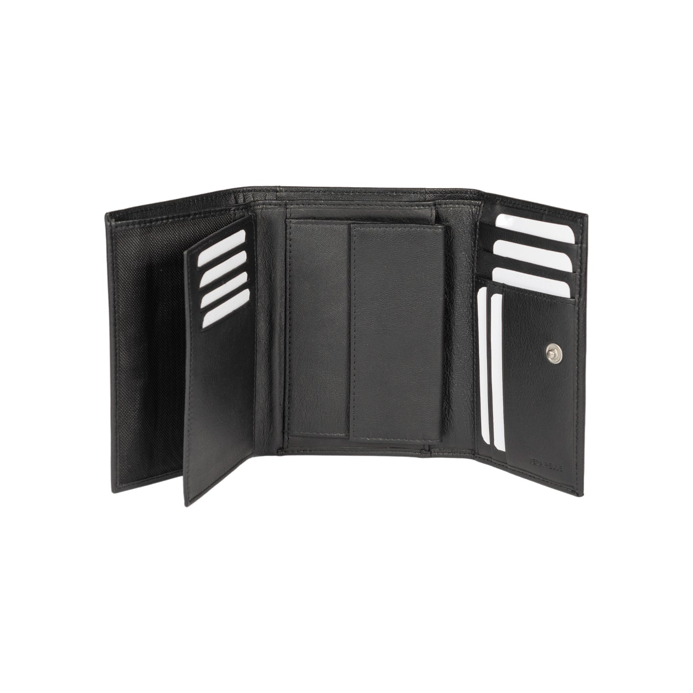 The well-thought-out landscape design offers comprehensive organization. Inside there are numerous slots for credit cards and IDs, several large compartments for banknotes and a separate zippered coin compartment for the safe storage of change.