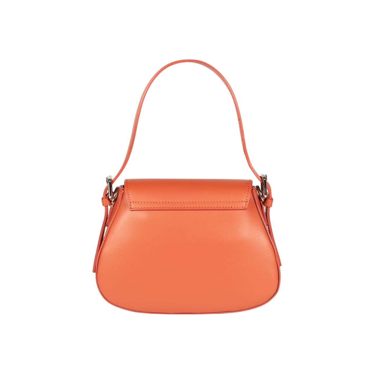 With dimensions of 24 x 18 x 9 cm, the **orange shoulder bag** is an ideal size for everyday use. The interior offers enough space for all important essentials. A special detail is the handle, which, with a “Luce manico” (handle height) of 14.5 cm, fits perfectly in the hand or can be carried elegantly in the crook of the arm. An additional long shoulder strap provides more carrying options.
