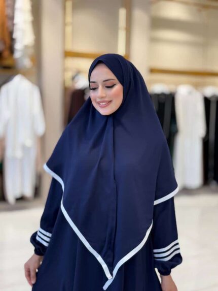 Abaya Set with Khimar and Contrast Stripes – Black Navy