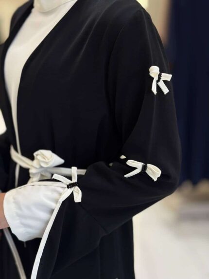 Abaya 2-Piece Set | Long-sleeve Dress with Open Overlay Abaya in White or Brown