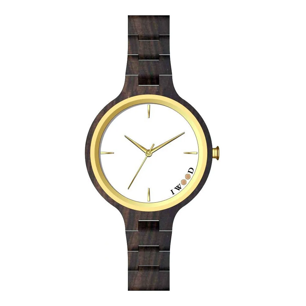Erleben Sie die einzigartige Verbindung von Natur und Design mit der **Iwood Echtholz Damenuhr** (Modell: IW18442002). Diese außergewöhnliche Uhr ist ein Statement für Nachhaltigkeit und individuellen Stil. Gefertigt aus echtem, dunklem Schwarzholz, ist jede **Holz Damenuhr** ein Unikat mit einer einzigartigen Maserung. Sie ist das perfekte Accessoire für die umweltbewusste Frau, die natürliche Materialien und minimalistisches Design schätzt.
