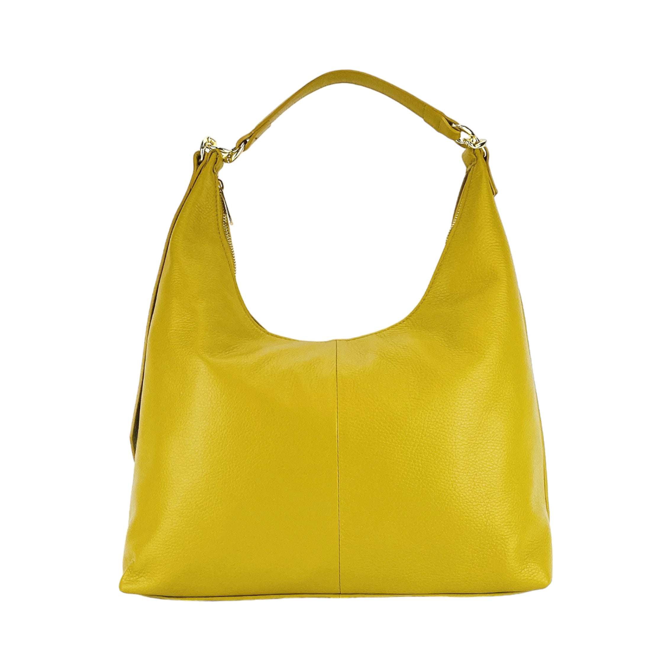 Diese elegante **weiche Schultertasche für Damen** (Modell: RB1017AR) ist ein Meisterwerk italienischer Handwerkskunst, gefertigt aus feinstem Echtleder in einem warmen **Senfgelb**. Sie verkörpert lässigen Luxus und ist die perfekte Begleitung für stilbewusste Frauen.